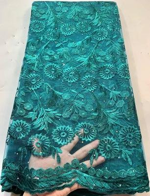 Tessuto di pizzo in poliestere africano tagliato con pai di paillettes Nigeria adatti per abbigliamento e decorazione alla moda