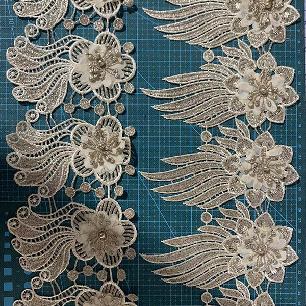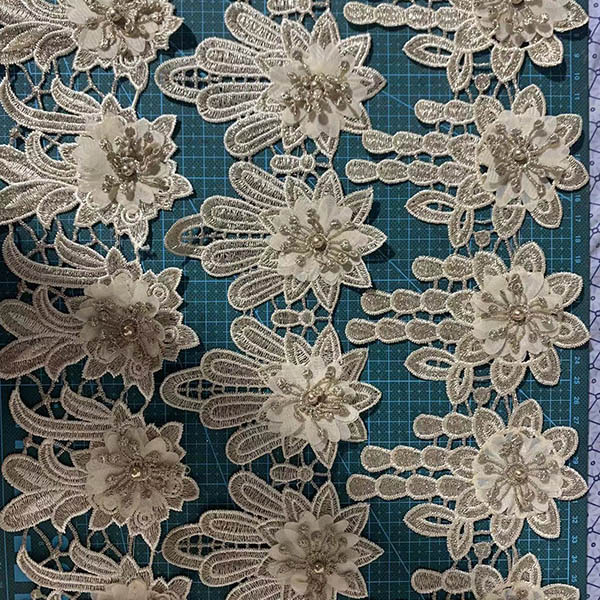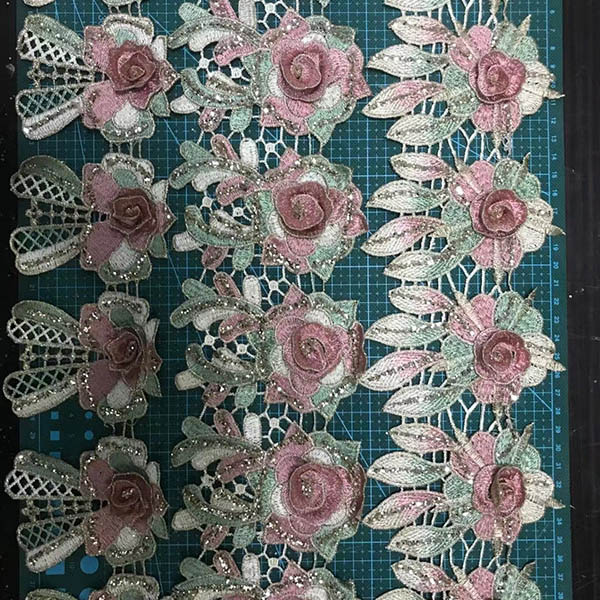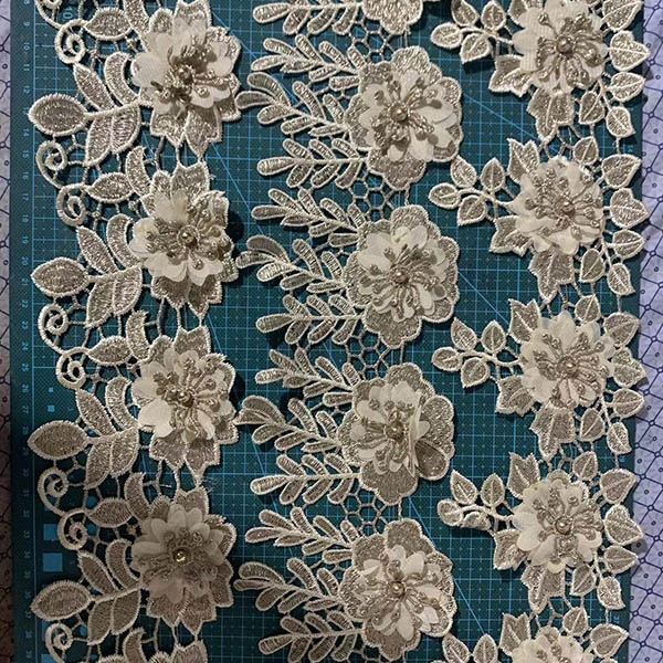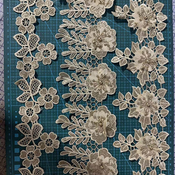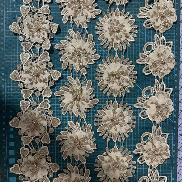 LB® è un produttore di rifiniture in poliestere con fiori 3D su larga scala, queste rifiniture in poliestere con fiori 3D sono l'ultima creazione di pizzi di alta qualità. Il rivestimento in poliestere a fiore 3d è realizzato in materiale chimico, può essere utilizzato in abbigliamento, borse e prodotti tessili per la casa.