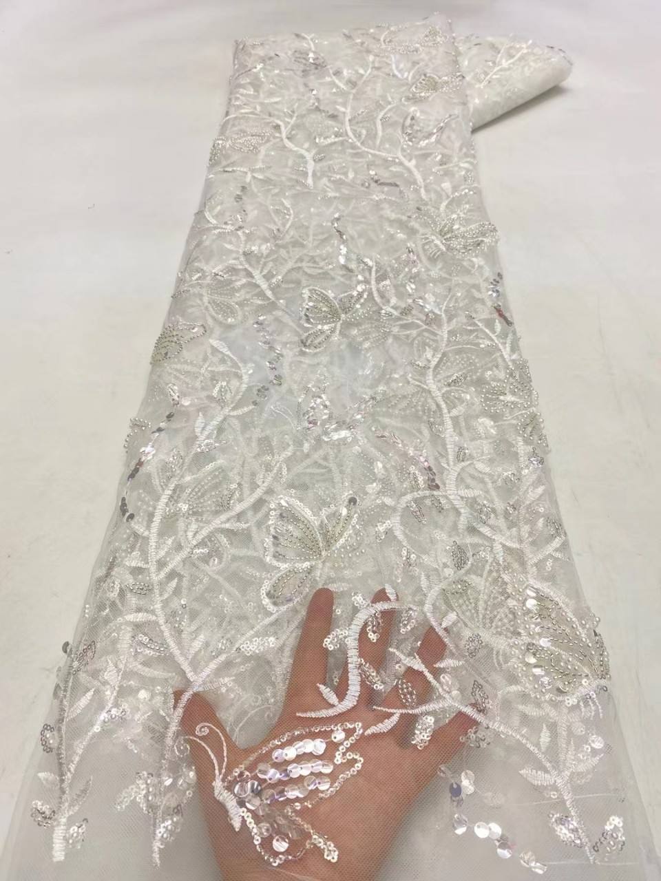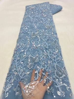 Tervato in pizzo da matrimonio colorato in rilievo 3D ricamato da iarde con un design tridimensionale di ricamo a farfalla 3D, è lussuoso e squisito, appositamente personalizzato per abiti da sposa e abiti da sera di fascia alta. Ogni cortile è finemente ricamato con paillettes e accenti perline. È leggero e traspirante, adatto per realizzare veli da sposa, decorazioni di abiti o abiti da sera.