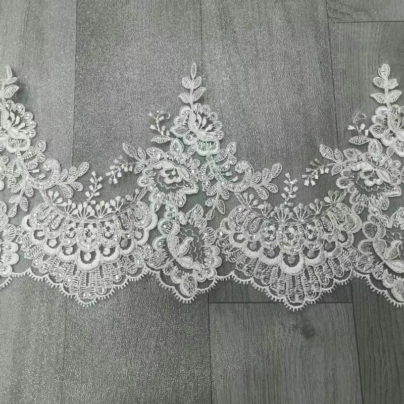 Luxury Bianco bianco da sposa in pizzo ricamato in pizzo da sposa ricamato per abito da sposa