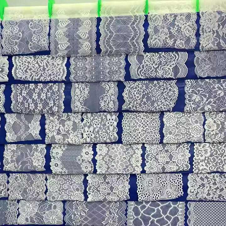 4. I materiali in pizzo elastico diversi sono diversi. Cotone: morbido, traspirante e comodo sulla pelle. Nylon: resistente forte, resistente e resistente all'abrasione. Fibra elastica: fornisce un buon allungamento e recupero. Blend: fornisce una combinazione di diverse proprietà in fibra.