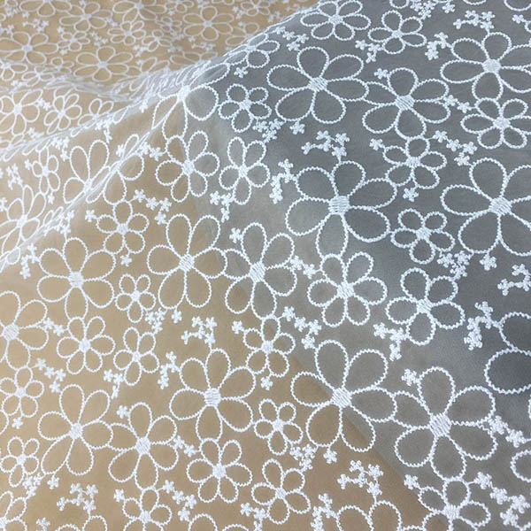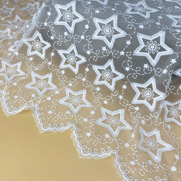 C'è un altro adorabile tipo di pizzo: il tessuto White Lace Mesh. Di solito sono tessuti da cucire. Sembrano assolutamente adorabili e sono perfetti per decorare abbigliamento casual e abiti da sera.